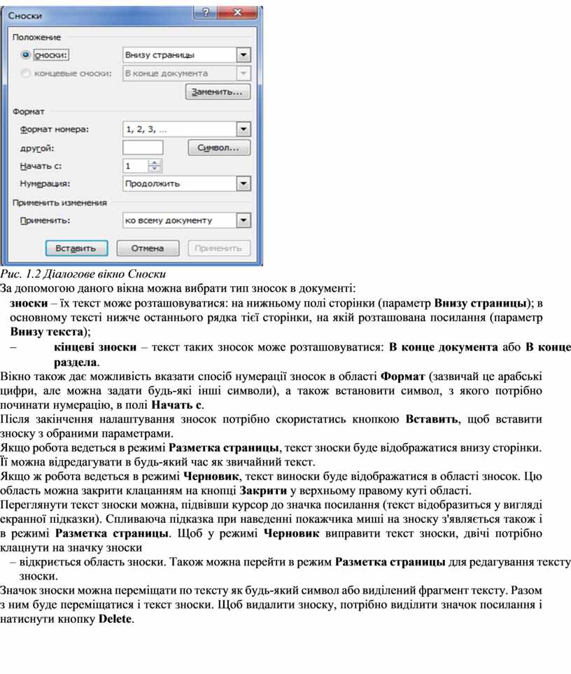 Рис. 1.2 Діалогове вікно Сноски