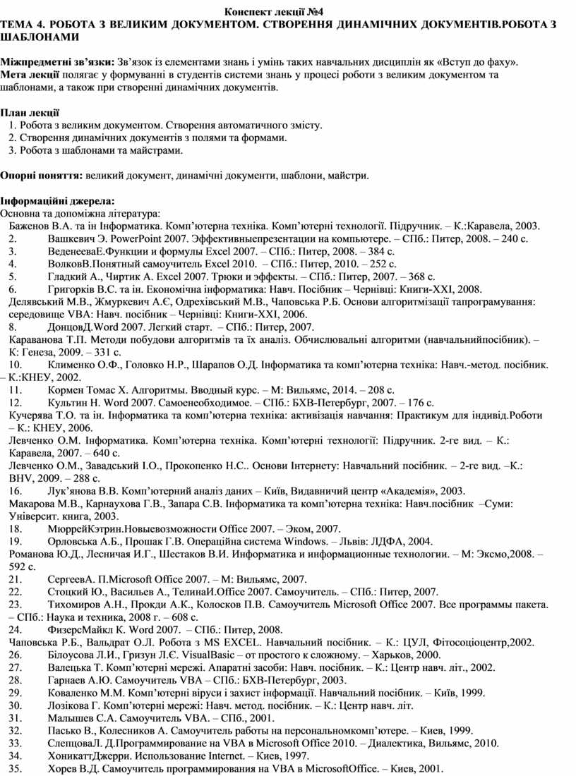 ТЕМА 4. РОБОТА З ВЕЛИКИМ ДОКУМЕНТОМ. СТВОРЕННЯ ДИНАМІЧНИХ ДОКУМЕНТІВ. РОБОТА З ШАБЛОНАМИ