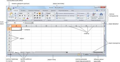 Рис. 1.1. Загальний вигляд вікна Microsoft Excel