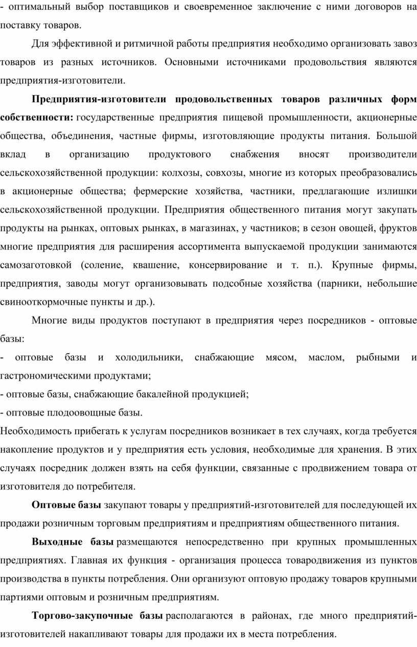 Рациональная организация снабжения предприятий общественного питания сырьем, полуфабрикатами, продуктами и материально-техническими средствами является важнейшей предпосылкой эффективной и ритмичной работы производства.