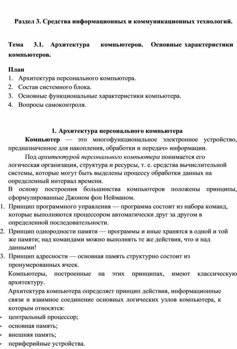 Тема 3.1. Архитектура компьютеров. Основные характеристики компьютеров........................................................................................................................... 33