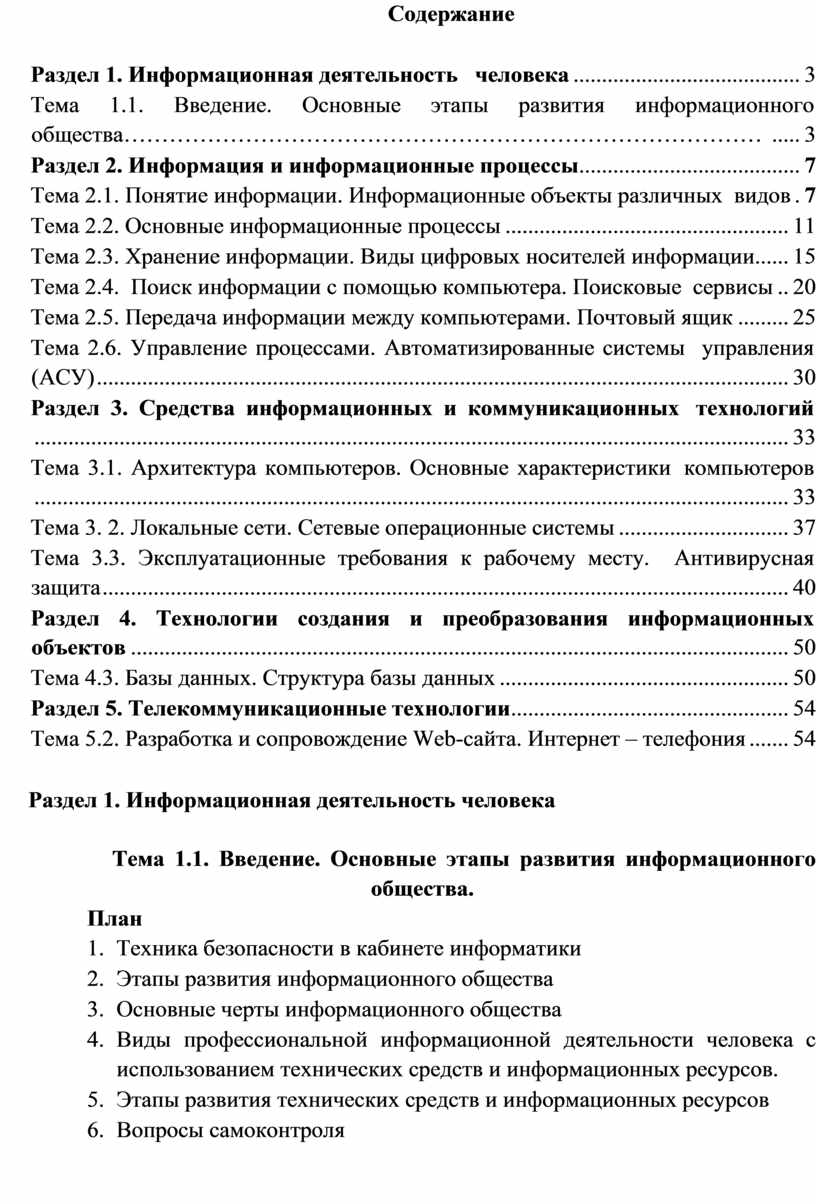 Тема 1.1. Введение. Основные этапы развития информационного общества………………………………………………………………………… ..... 3