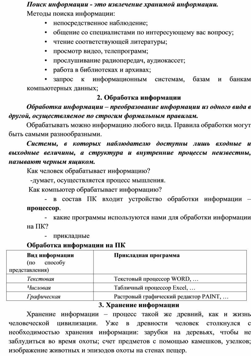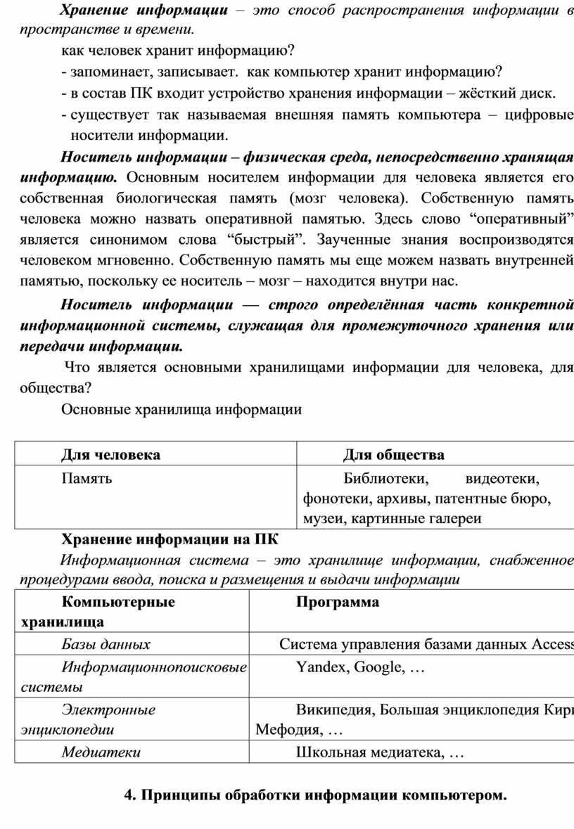 1. Объёмы информации возрастут и человек будет привлекать для её обработки и хранения специальные технические средства.