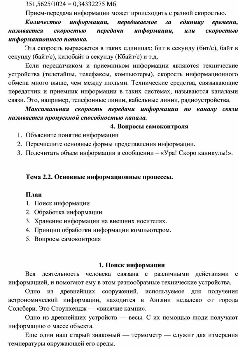 Тема 2.1. Понятие информации. Информационные объекты различных видов. 7