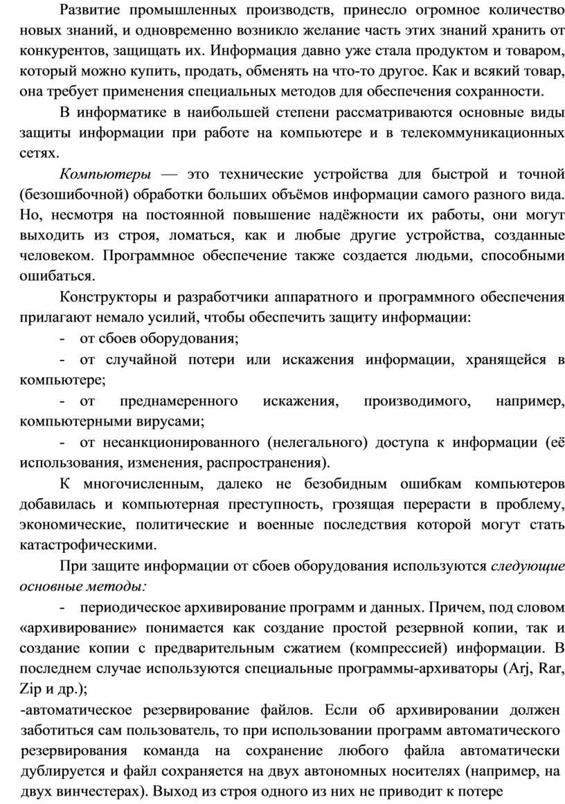 В настоящее время компьютеры используются для обработки не только чисел, но и других видов информации. Благодаря этому компьютеры прочно вошли в жизнь современного человека, широко применяются в производстве, проектно-конструкторских работах, бизнесе и многих других отраслях.