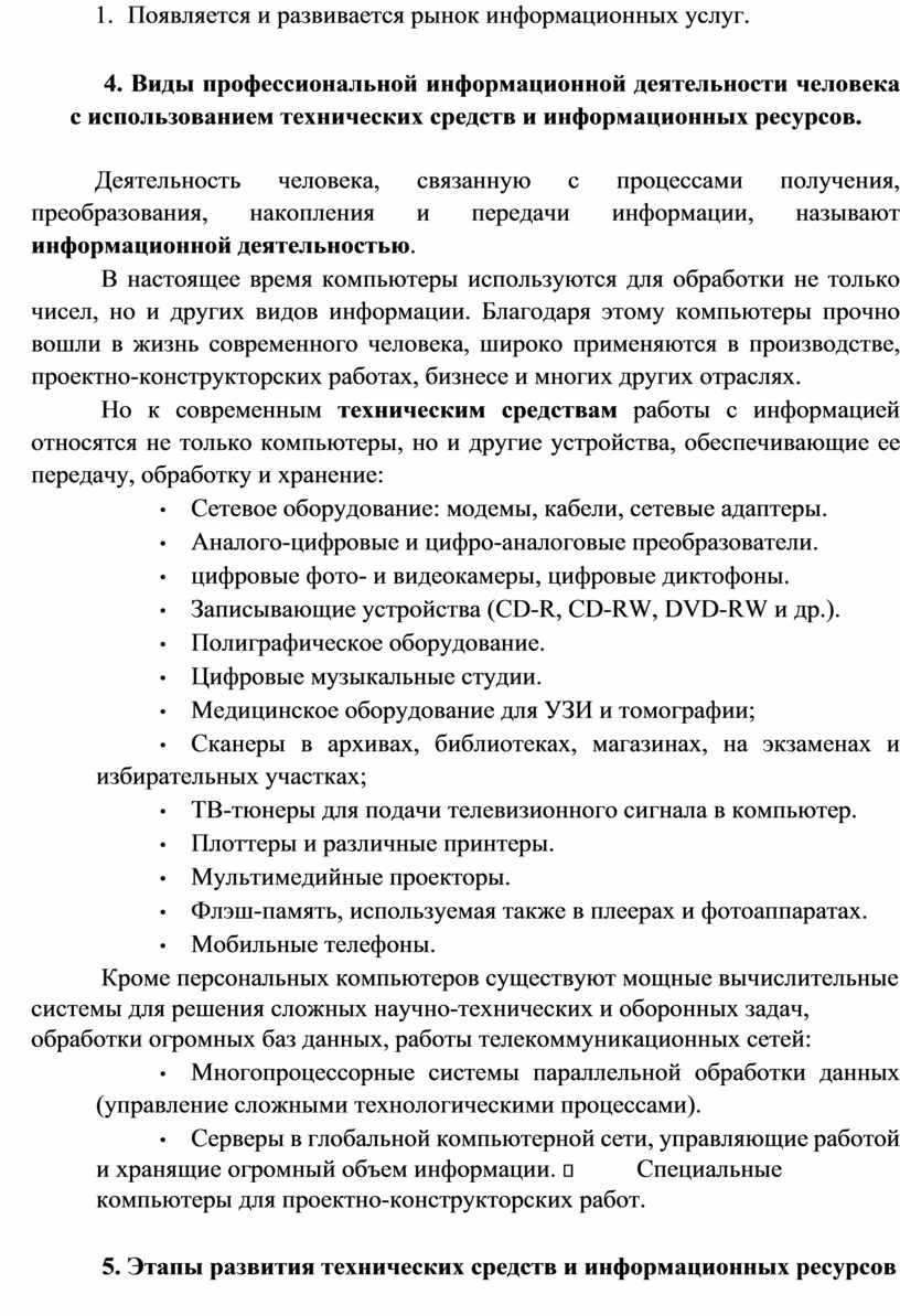4. Виды профессиональной информационной деятельности человека с использованием технических средств и информационных ресурсов.