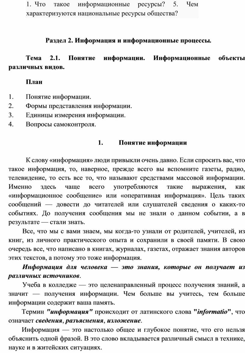 4. Что такое информационные ресурсы? 5. Чем характеризуются национальные ресурсы общества?