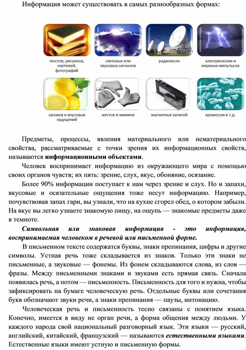 Информация может существовать в самых разнообразных формах: