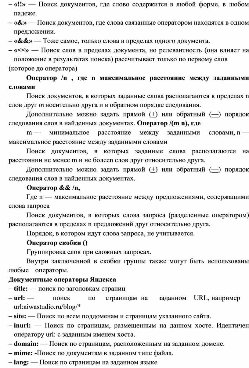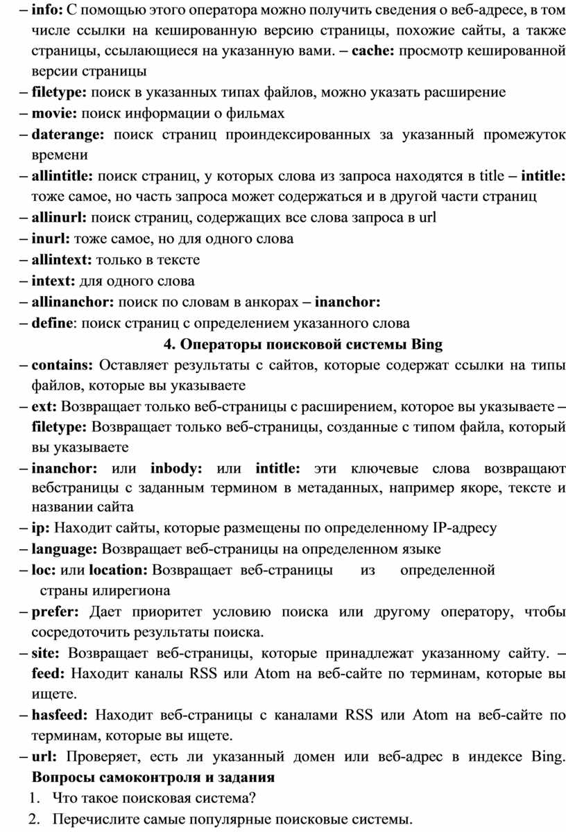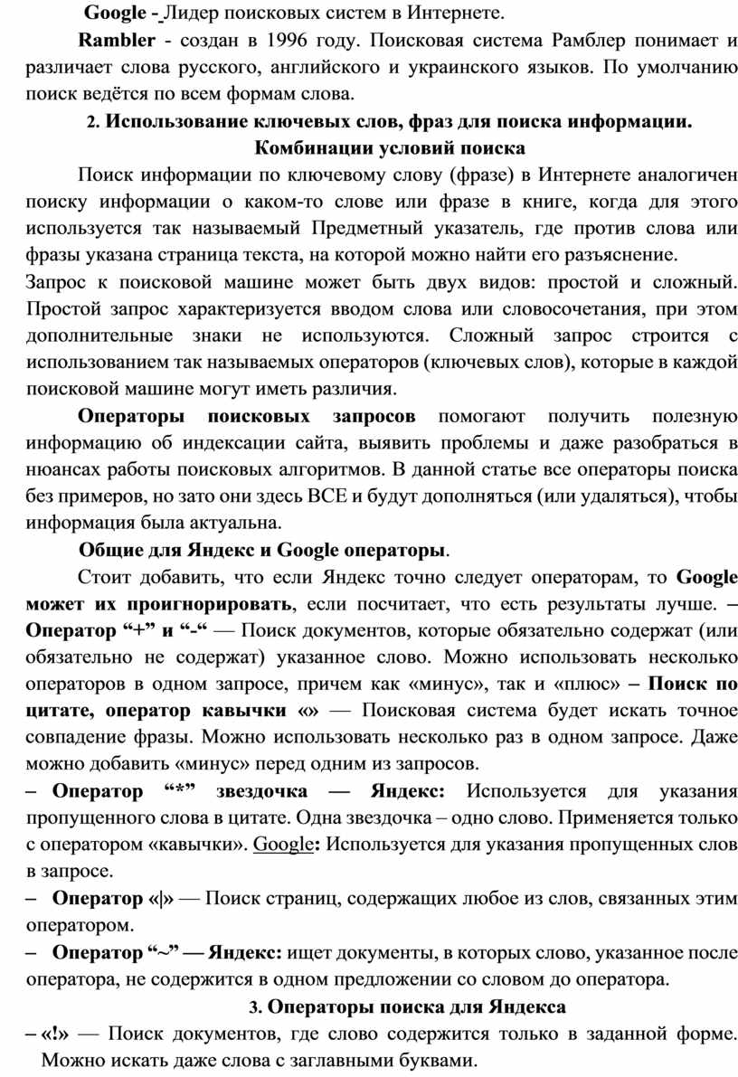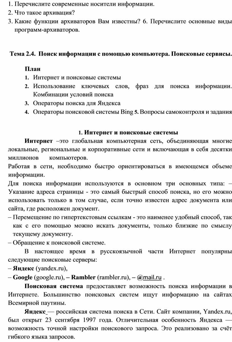 Тема 2.4. Поиск информации с помощью компьютера. Поисковые сервисы.. 20