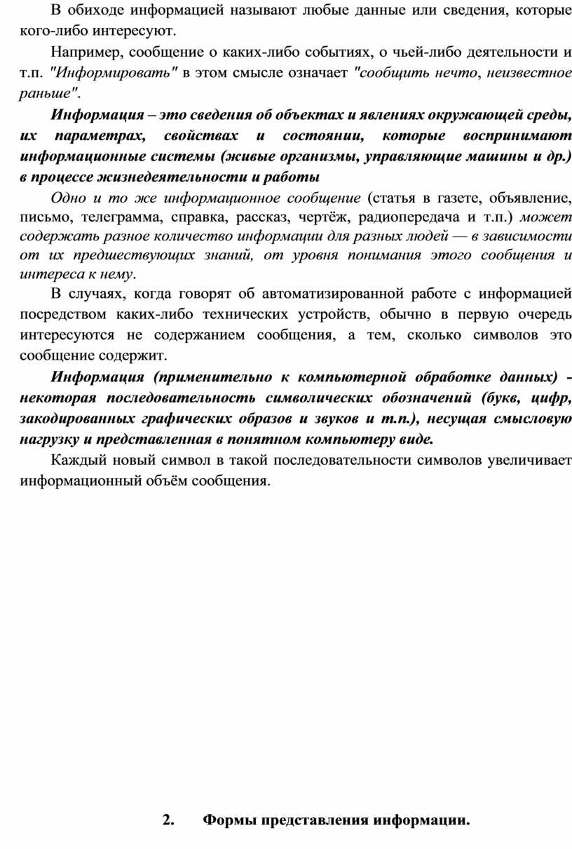 2. Формы представления информации.