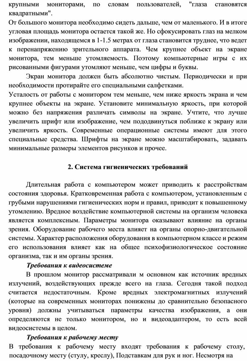Работая с техническими средствами, необходимо строго руководствоваться санитарно-гигиеническими нормами, правилами безопасности и поведения в кабинете информатики. Современные технические устройства - сложная и дорогостоящая техника, требующая соблюдения определенных инструкций. Все компьютерные устройства питаются электротоком напряжением 220 вольт, которое является опасным для жизни человека. Кроме того, работа с данными техническими устройствами вредна для организма человека. Поэтому все лица, допущенные к работе в кабинете информатики, где находятся такие устройства, должны пройти полный инструктаж по технике безопасности, правилам поведения и санитарногигиенических нормам при работе с компьютерами и соблюдать их в своей дальнейшей деятельности.