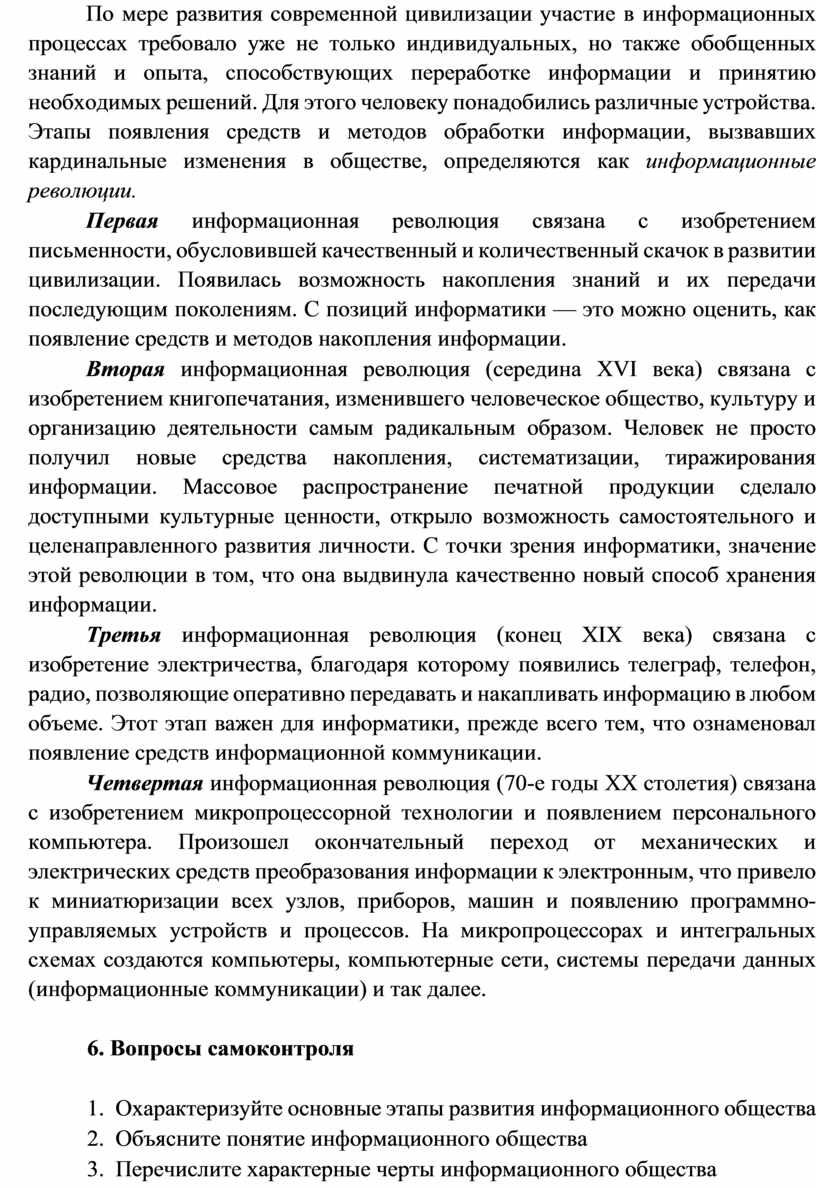 1. Охарактеризуйте основные этапы развития информационного общества