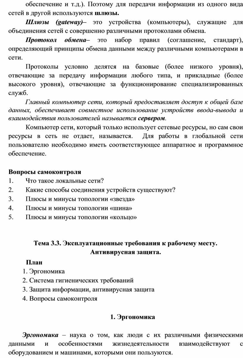 Тема 3.3. Эксплуатационные требования к рабочему месту. Антивирусная защита........................................................................................................................... 40