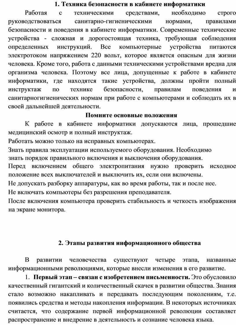 1. Техника безопасности в кабинете информатики