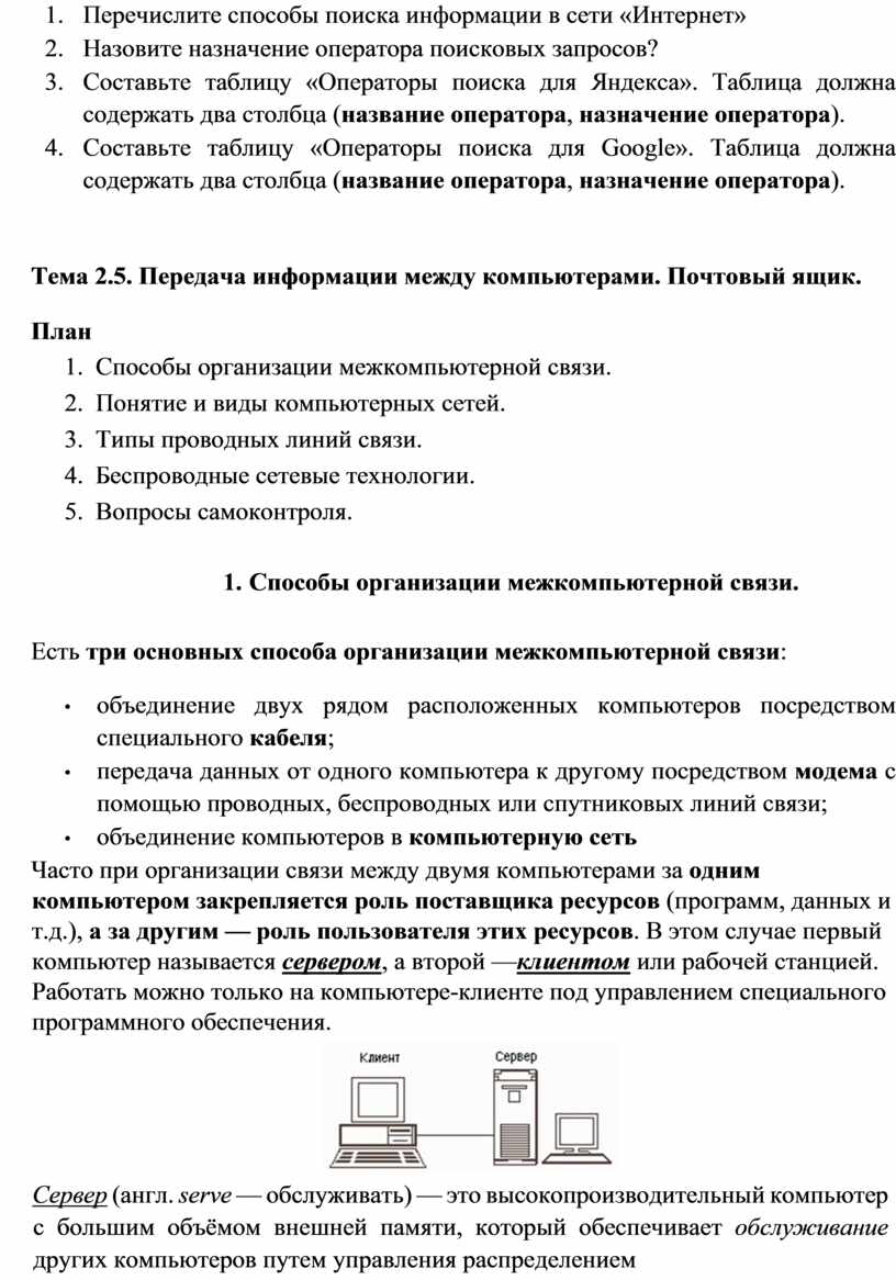 Тема 2.5. Передача информации между компьютерами. Почтовый ящик......... 25