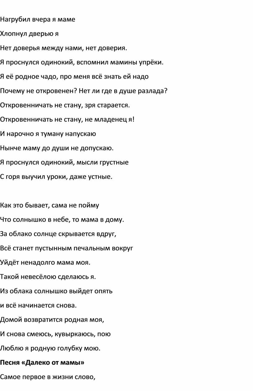 Песня «Далеко от мамы»