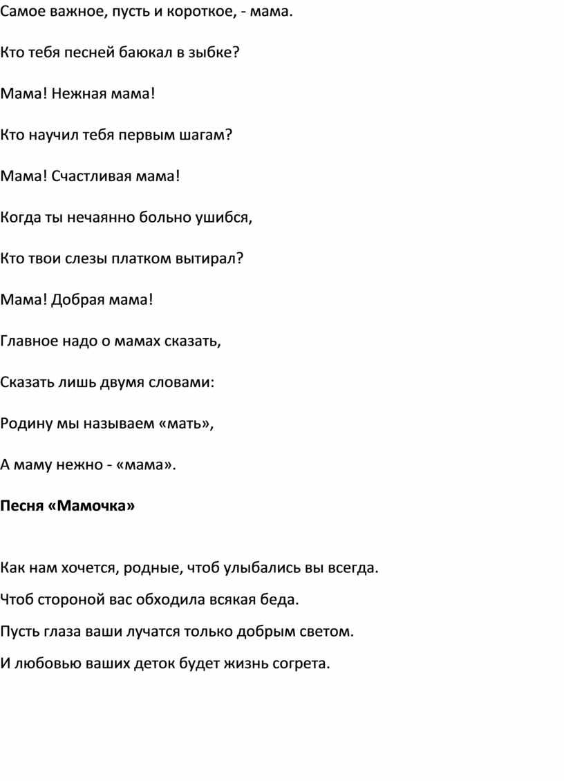 Песня «Мамочка»