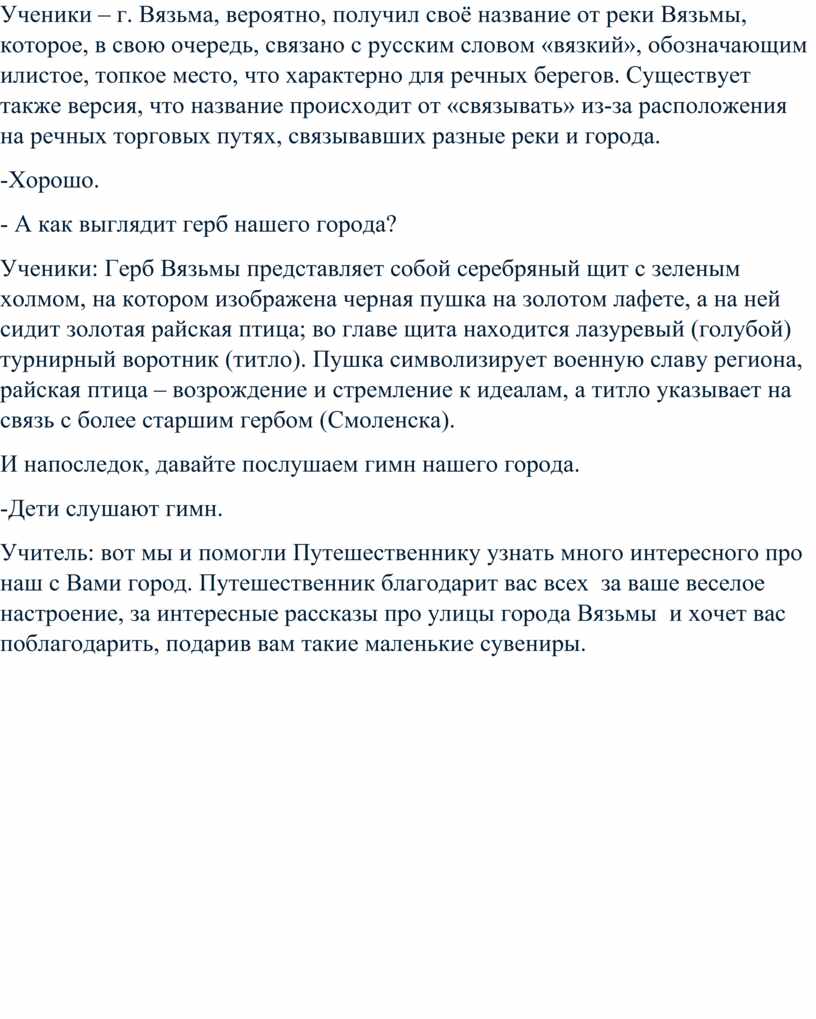 Но, для начала скажите пожалуйста, как вы думаете почему наш город называется Вязьма?
