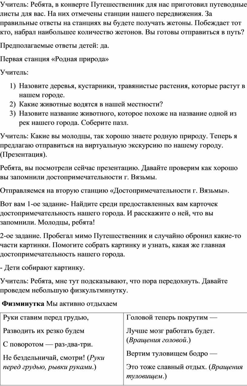 Отправляемся на вторую станцию «Достопримечательности г. Вязьмы».