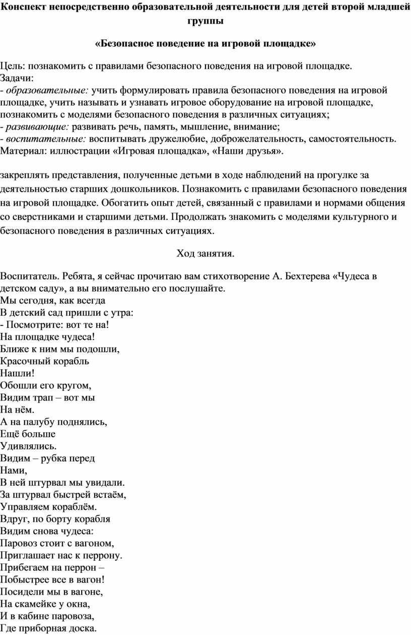 Цель: познакомить с правилами безопасного поведения на игровой площадке.