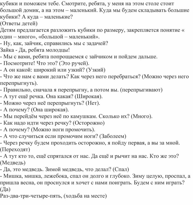 для зайчат: для больших зайчиков из больших кубиков, для маленьких из маленьких