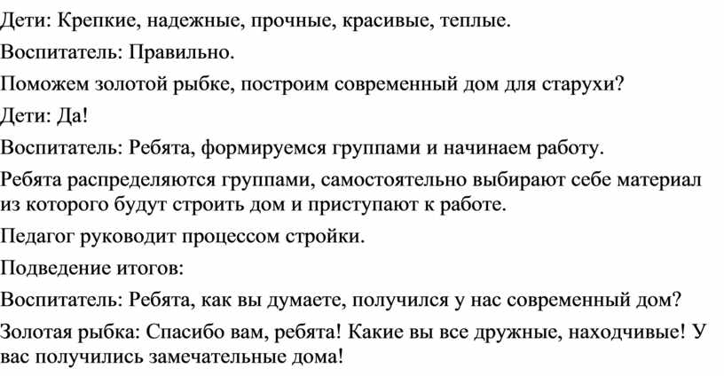 Золотая рыбка: Спасибо вам, ребята! Какие вы все дружные, находчивые! У вас получились замечательные дома!