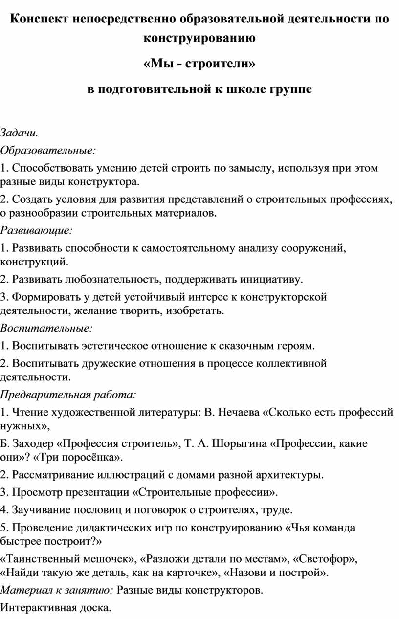 2. Создать условия для развития представлений о строительных профессиях, о разнообразии строительных материалов.