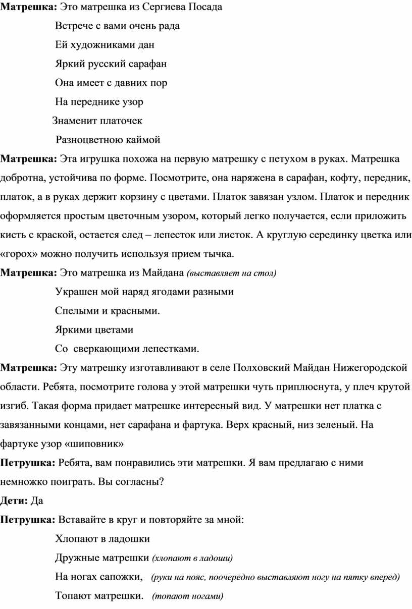 Петрушка: Я приглашаю вас в гости к Матрешке. Ну что вы согласны, готовы в путь-дорогу?