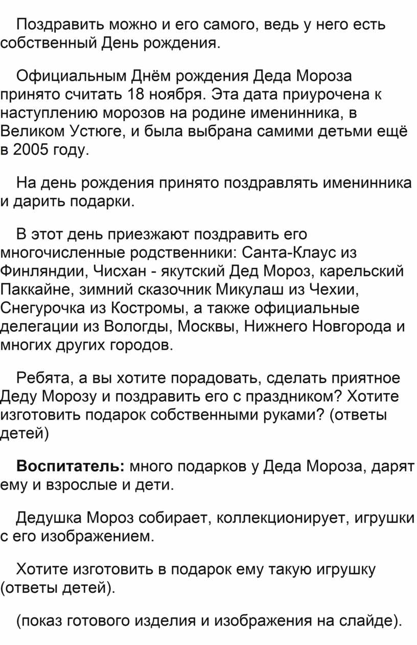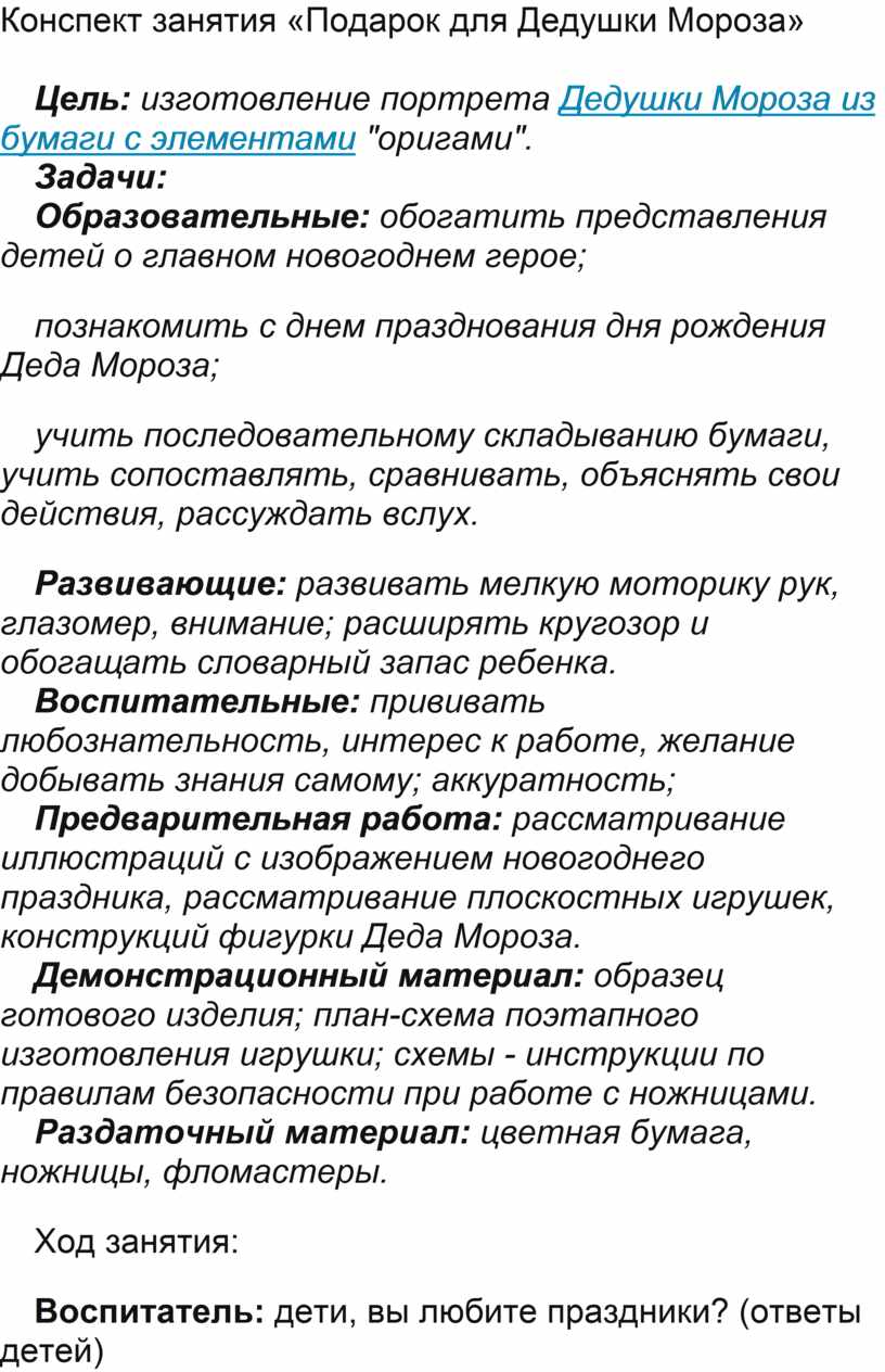 Ребята, а вы хотите порадовать, сделать приятное Деду Морозу и поздравить его с праздником? Хотите изготовить подарок собственными руками? (ответы детей)
