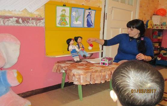 Воспитатель: Ребята, посмотрите кто к нам в гости пришёл. Это гости не простые, у них очень красивые имена: Виорел и Виорика, что означает –фиалка или колокольчик, одеты они в молдавские национальные костюмы, посмотрите какие красивые.