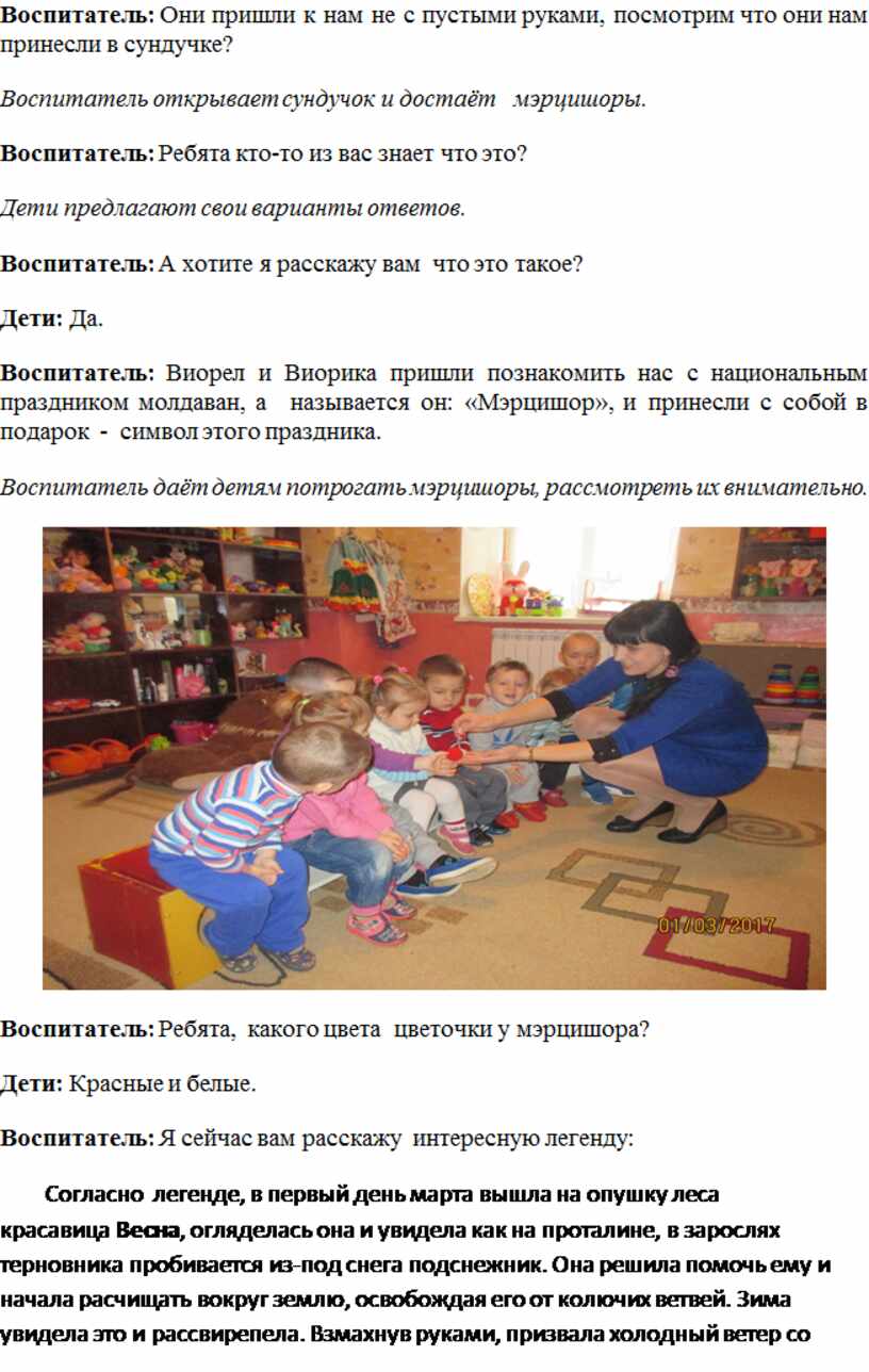 Воспитатель: Виорел и Виорика пришли познакомить нас с национальным праздником молдаван, а называется он: «Мэрцишор», и принесли с собой в подарок - символ этого праздника.