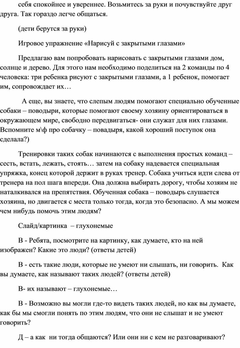 А еще, вы знаете, что слепым людям помогают специально обученные собаки – поводыри, которые помогают своему хозяину ориентироваться в окружающем мире, свободно передвигаться- они служат для них глазами. Вспомните м\ф про собачку – повадыря, какой хороший поступок она сделала?)