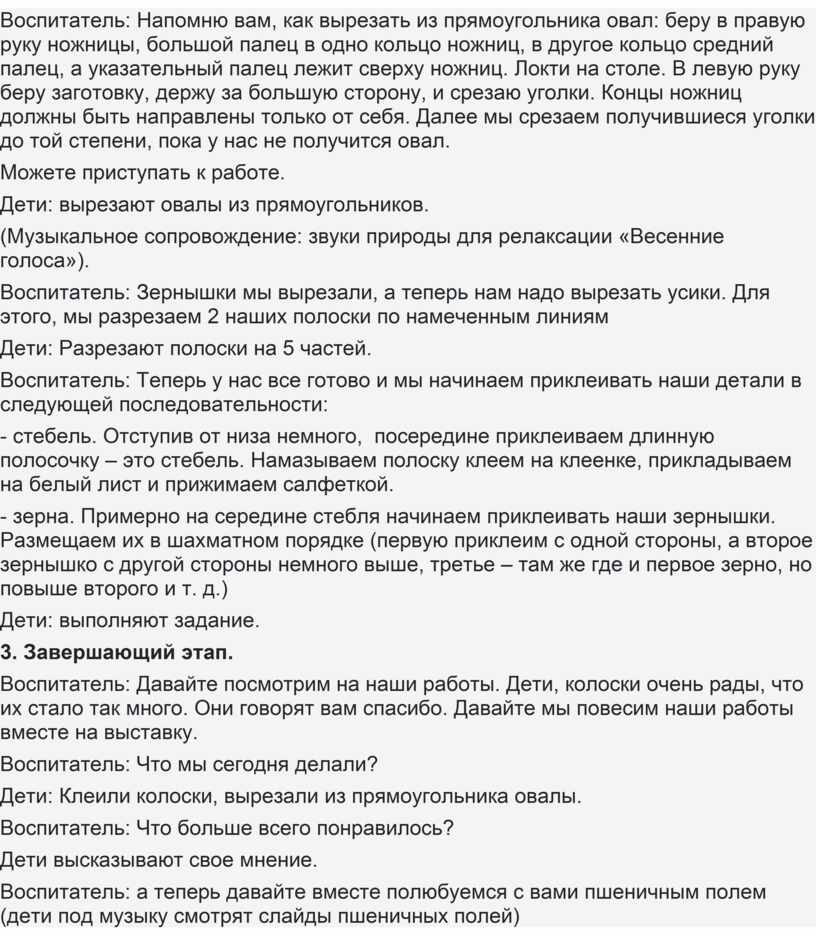 Дети: Клеили колоски, вырезали из прямоугольника овалы.
