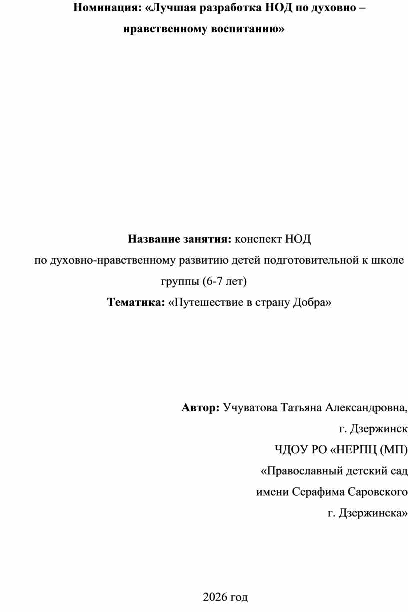 Номинация: «Лучшая разработка НОД по духовно – нравственному воспитанию»
