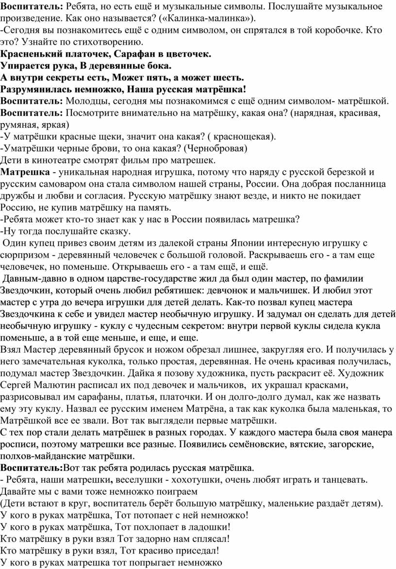 Воспитатель: Ребята, но есть ещё и музыкальные символы. Послушайте музыкальное произведение. Как оно называется? («Калинка-малинка»).