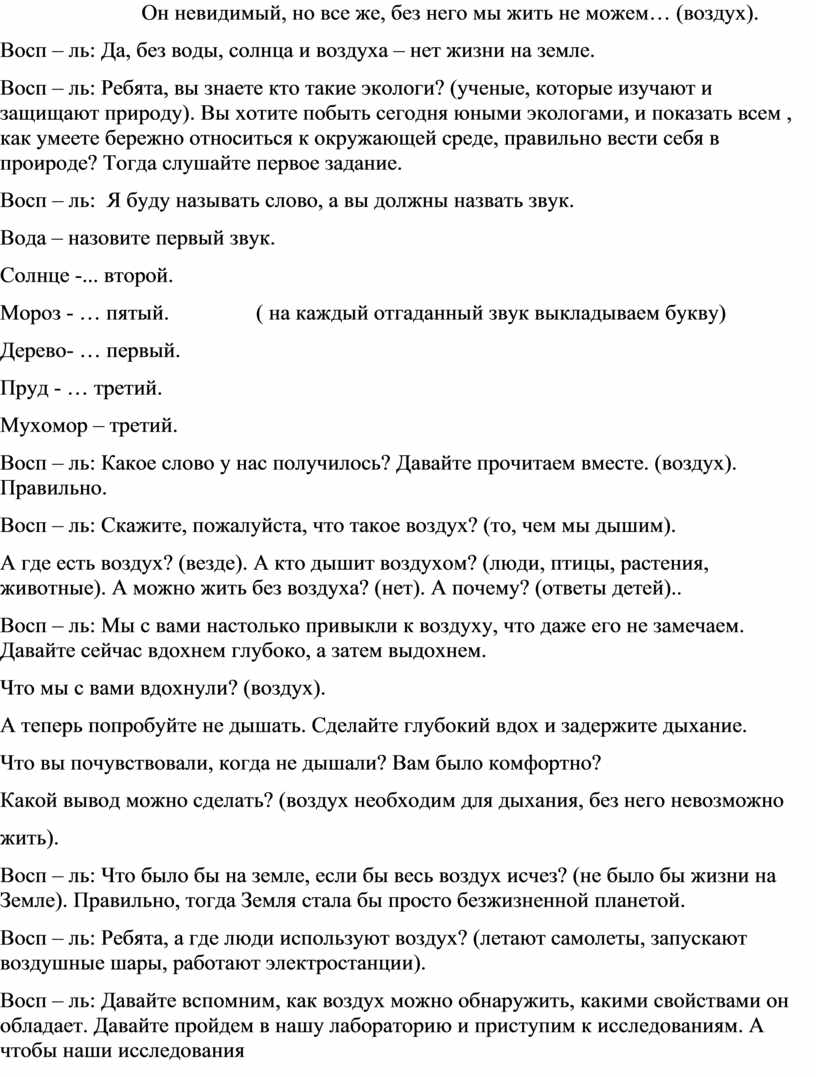 Восп – ль: Скажите, пожалуйста, что такое воздух? (то, чем мы дышим).