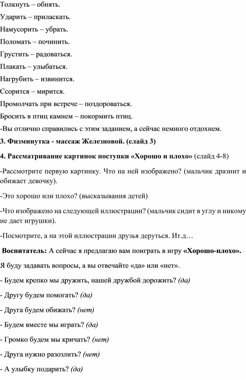 Воспитатель: А сейчас я предлагаю вам поиграть в игру «Хорошо-плохо».