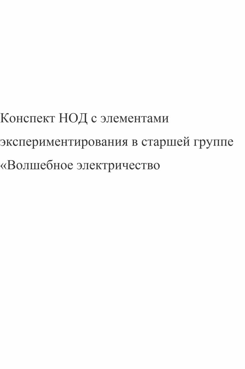 Конспект НОД с элементами экспериментирования в старшей группе «Волшебное электричество