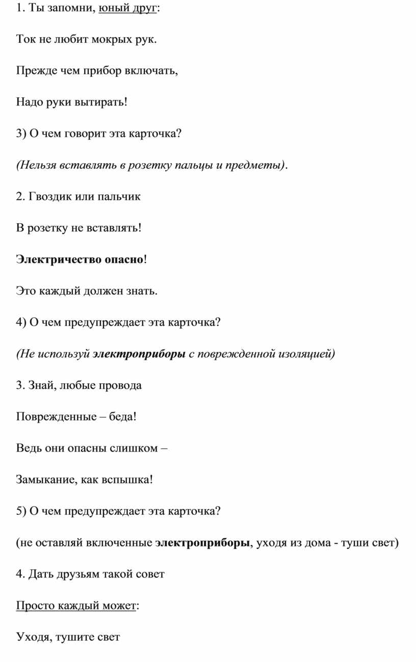 (не оставляй включенные электроприборы, уходя из дома - туши свет)