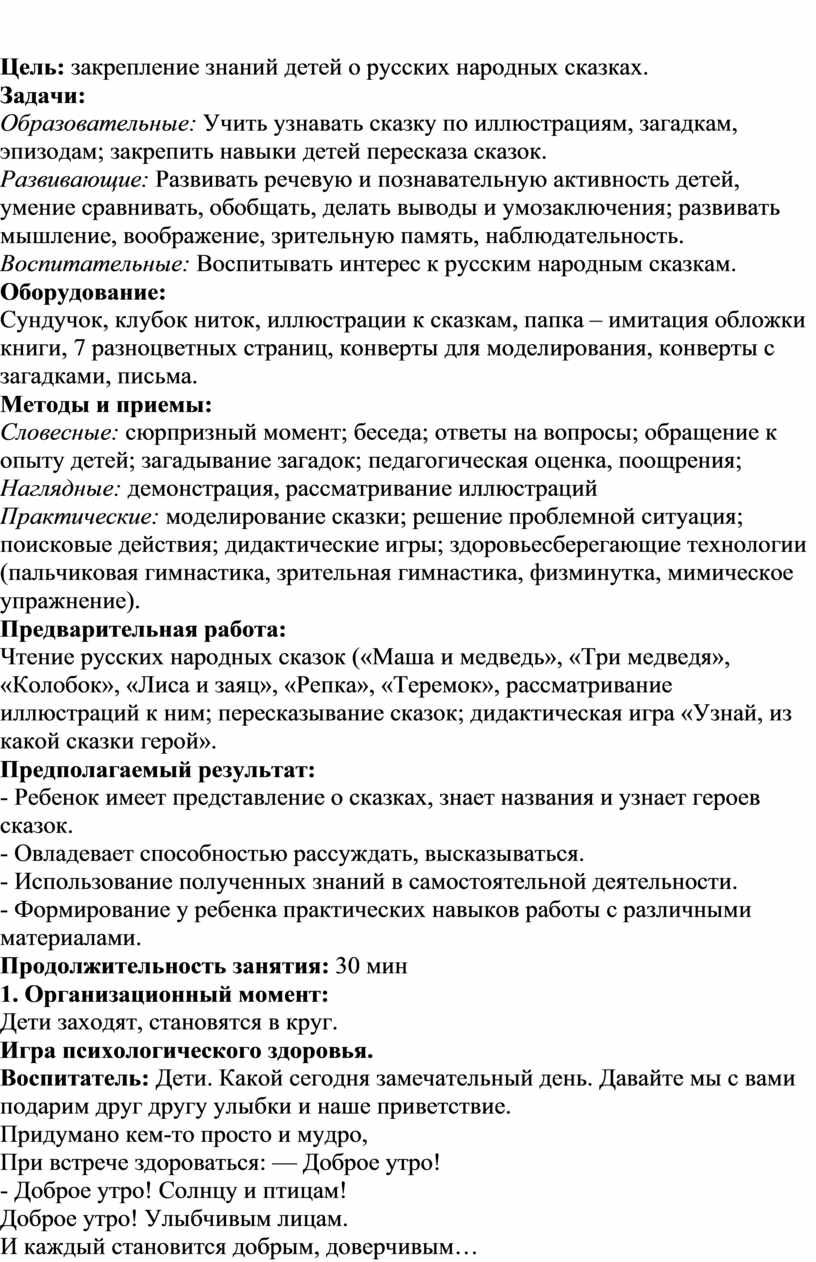 Воспитательные: Воспитывать интерес к русским народным сказкам.