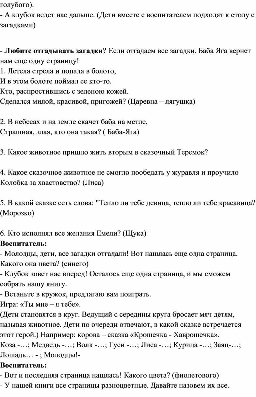 Воспитатель: Клубочек, дружок, помоги нам найти оставшиеся страницы