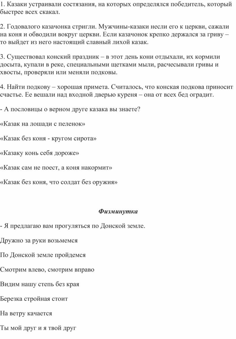 - В жизни казаку не обойтись без коня. С лошадьми у казаков связано много обычаев и народных примет. А какие из них вы знаете?