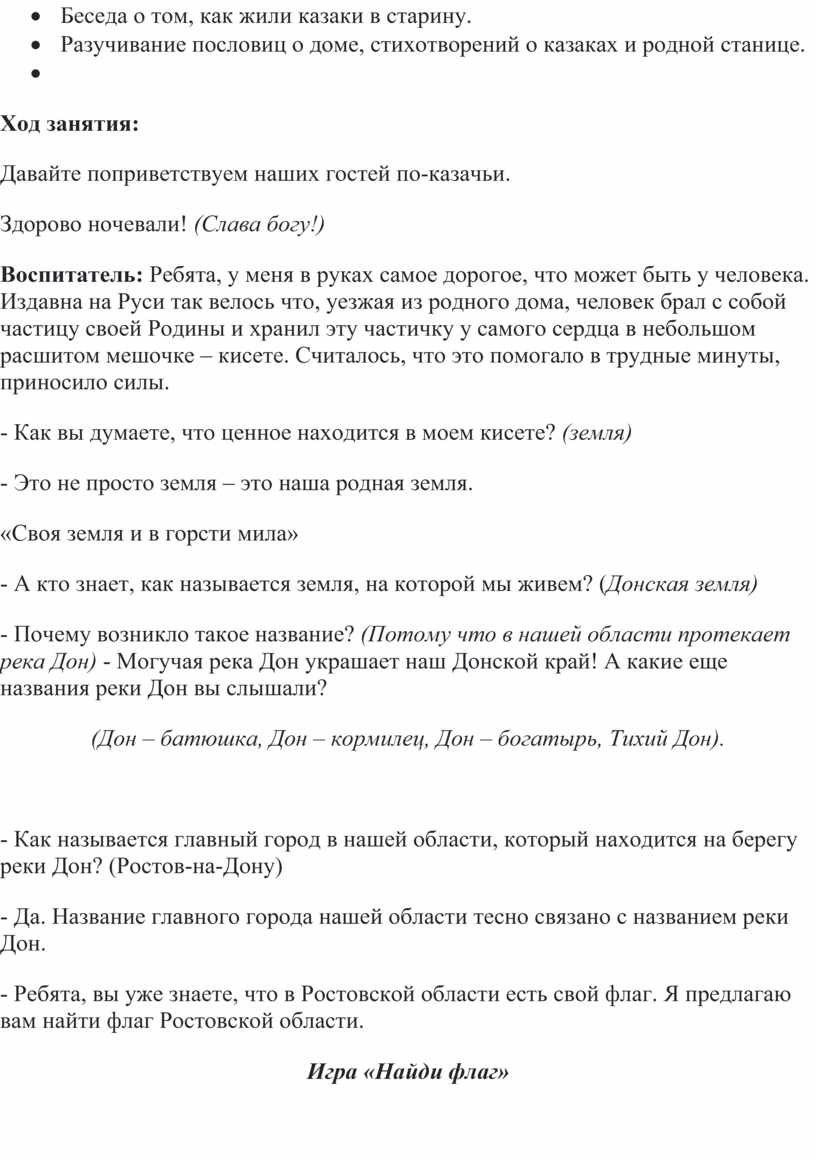 Формировать у детей дошкольного возраста интереса к истории Донского края.