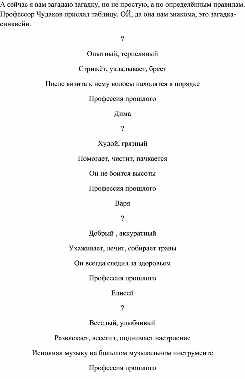 Давайте вернёмся к стульчикам и посмотрим, чем же занимался профессор Чудаков дальше. Он пишет, что отправился на машине времени в прошлое, чтобы узнать профессии, которые существовали в прошлом. А мы можем попасть в прошлое и без машины-времени.