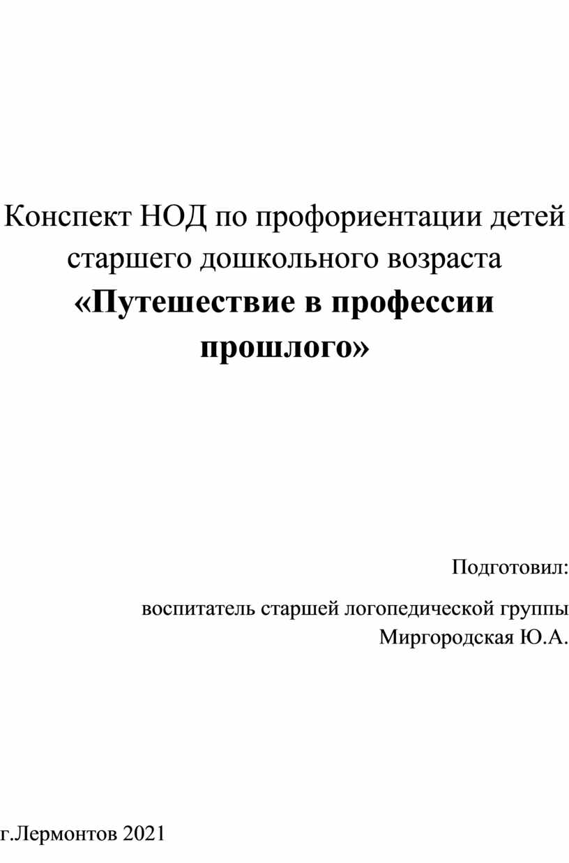Конспект НОД по профориентации детей старшего дошкольного возраста «Путешествие в профессии прошлого»