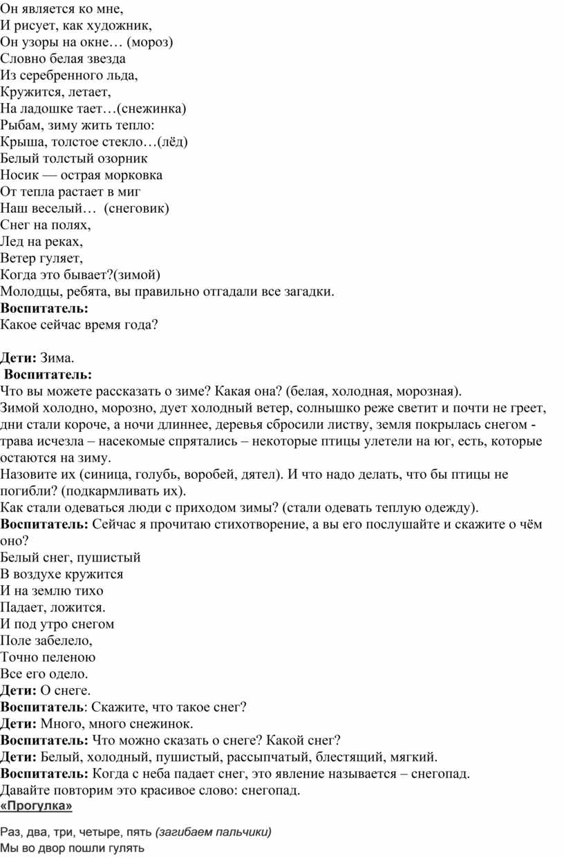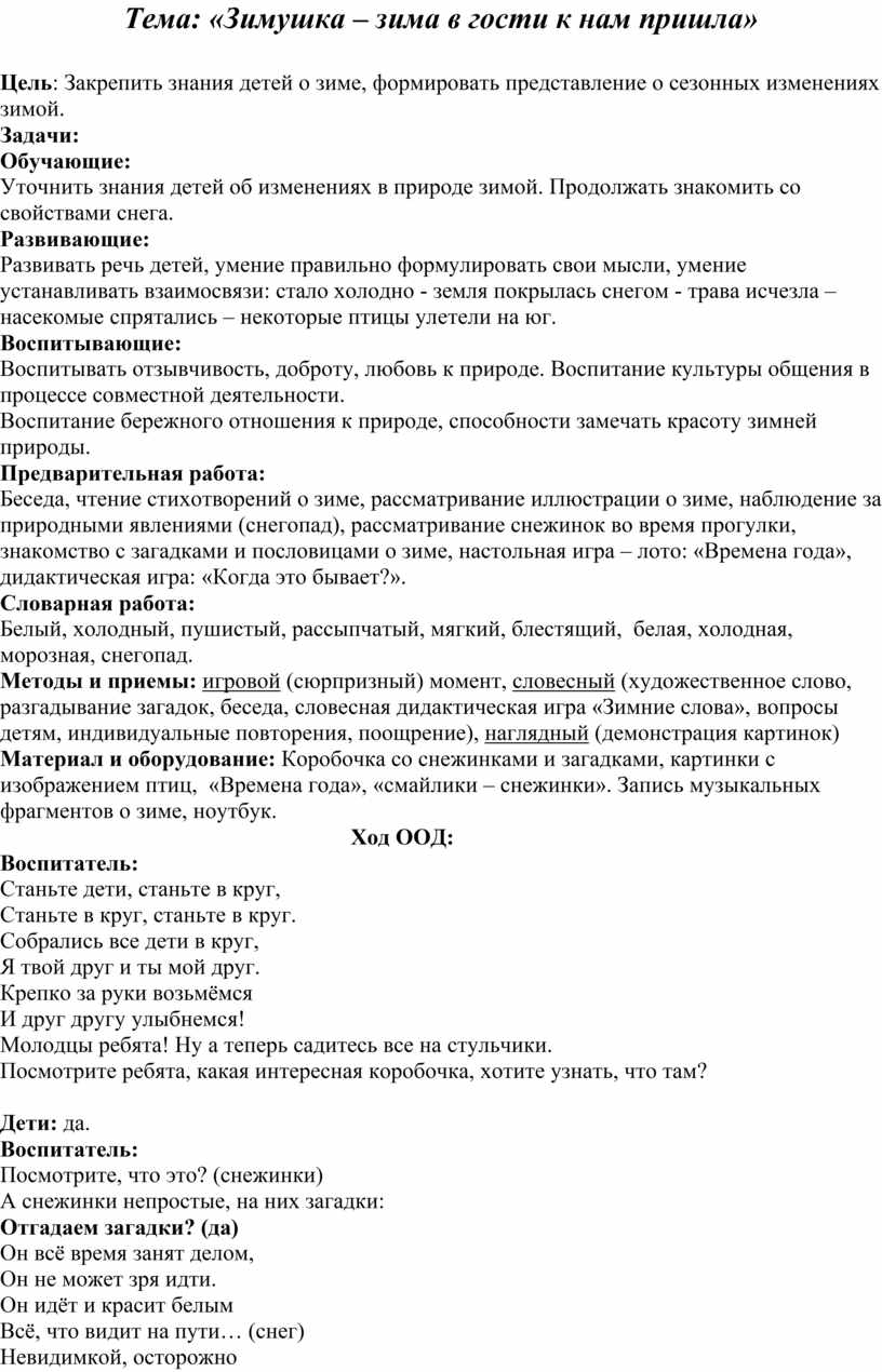 Цель: Закрепить знания детей о зиме, формировать представление о сезонных изменениях зимой.