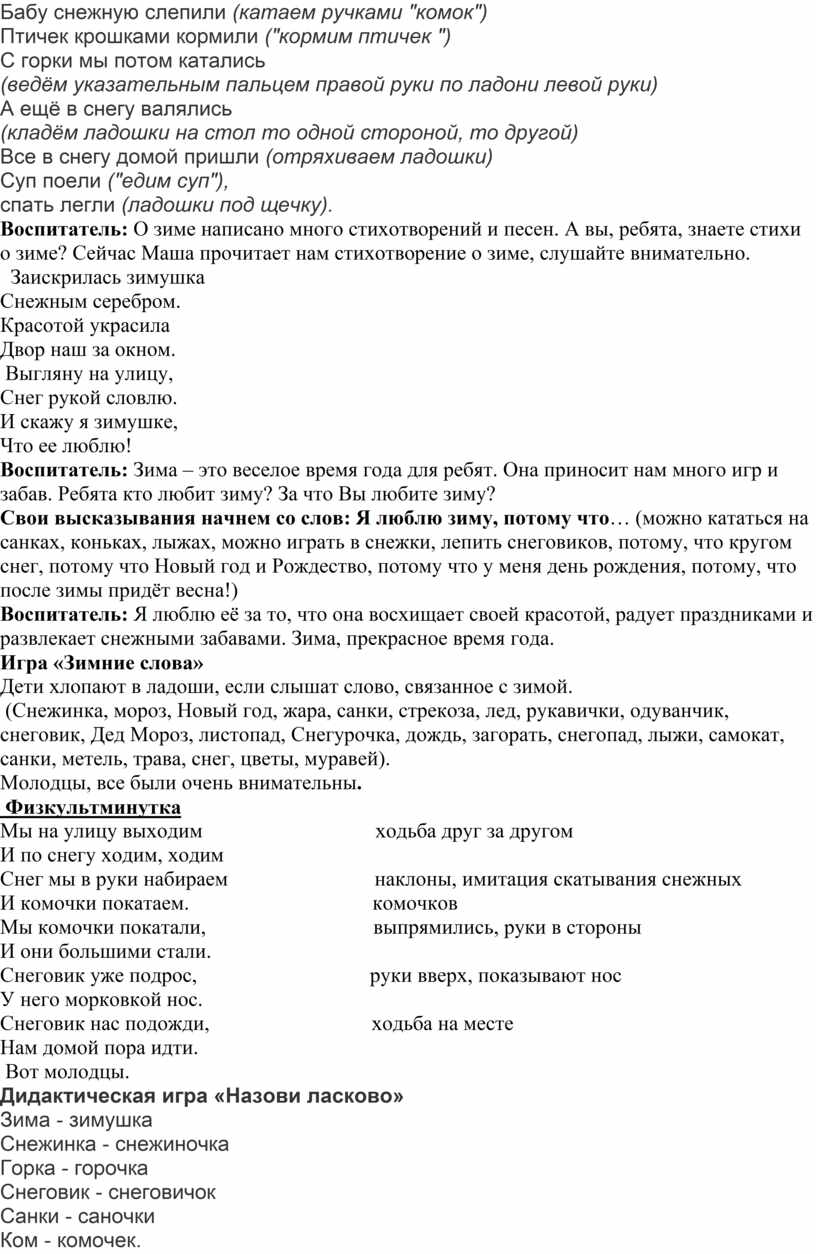 Воспитатель: Зима – это веселое время года для ребят. Она приносит нам много игр и забав. Ребята кто любит зиму? За что Вы любите зиму?