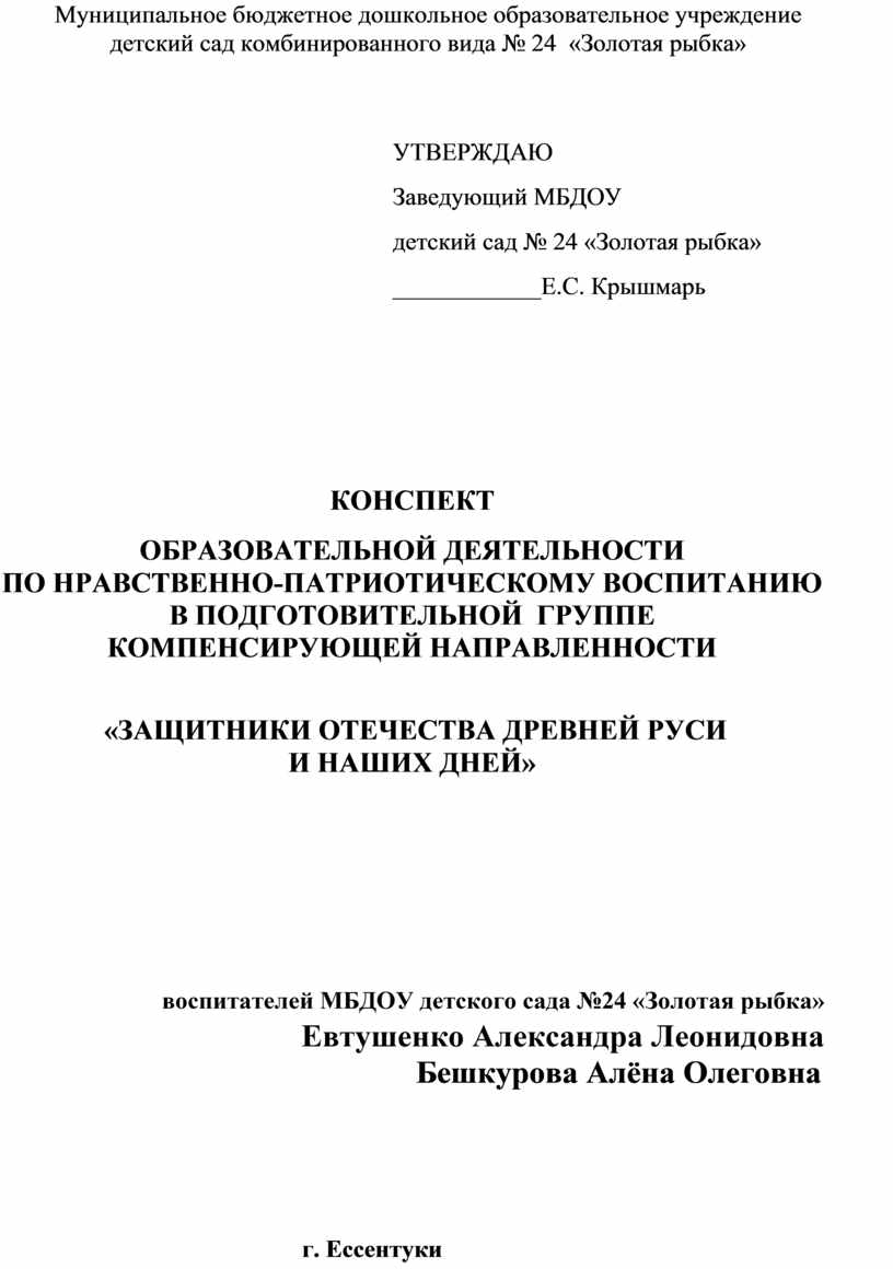 ОБРАЗОВАТЕЛЬНОЙ ДЕЯТЕЛЬНОСТИ ПО НРАВСТВЕННО-ПАТРИОТИЧЕСКОМУ ВОСПИТАНИЮ В ПОДГОТОВИТЕЛЬНОЙ ГРУППЕ