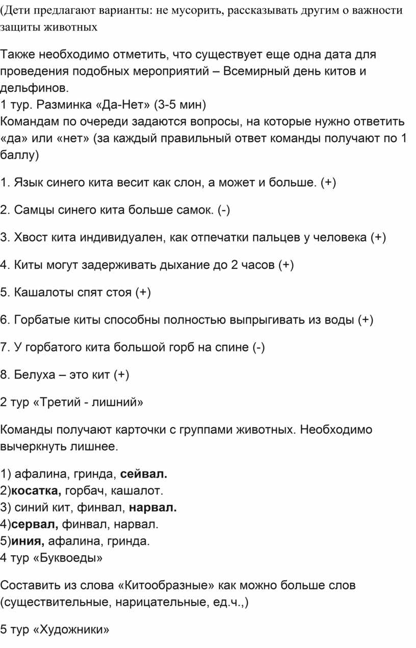 — Ребята, вы уже знаете, что 19 февраля отмечается Всемирный день защиты морских млекопитающих. Этот день ещё называют Днём китов и дельфинов. Кто-нибудь из вас видел китов или дельфинов в зоопарке или на экране телевизора? Какие они?