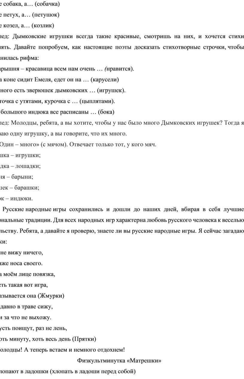 Словарная работа: Россия, традиции, дымковская игрушка, барыня, жмурки, прятки,